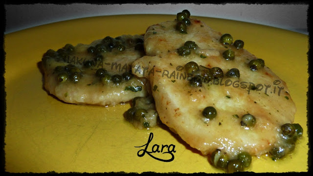Far sciogliere in una padella, 20 g di burro con un goccio d'olio extravergine d'oliva e nel frattempo infarinare per bene la carne da entrambi i lati. Cuocere la carne per bene sia da un lato che dall'altro, salarle e una volta cotte toglierle dalla padella. Nella padella della carne, stemperare il fondo di cottura con il vino bianco, aggiungere la salvia (precedentemente inumidita con acqua per esaltare il suo sapore e profumo) e il pepe precedentemente scolato e cuocere qualche minuto. Aggiungere i restanti 20 g di burro, e le fettine di carne. Quando il "sughetto" si sarà addensato, spegnere e servire subito.
