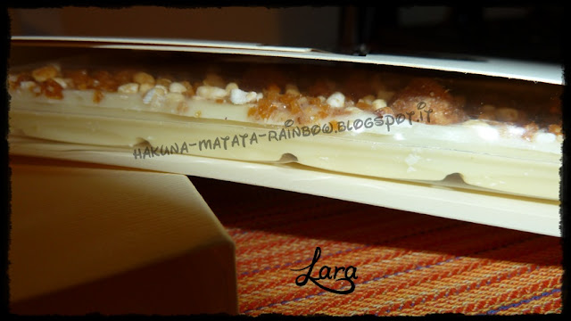 Nuova collaborazione con la ditta My Swiss Chocolate, che produce tavolette di cioccolato e praline sia classiche che personallizzate. Con quelle personalizzate ci si può sbizzarrire con più di 116 ingredienti di qualità e ben 24 aromi partendo ovviamente con base una cioccolata classica, al latte, bianca o fondente. Se si vuole fare un regalo si può decorare addirittura con fiori, per gli innamorati, con zuccherini a forma di cuore, c'è veramente da perdersi tra gli ingredienti per la decorazione. Per fare un regalo secondo me sono davvero un ottimo pensiero, perchè la qualita del cioccolato è davvero buonissima. Io ho scelto la tavoletta Crunchy composta da: una base di cioccolato bianco guarnita con nougat, granuli di nocciole tostate e zuccherate, riso soffiato caramellato e nocciole caramellate. E' una cioccolata fantastica, si scioglie in bocca, di solito le cioccolate bianche tendono a bruciare in gola perchè troppo dolci, invece questa nonostante i tanti ingredienti è fantastica, è proprio un peccato lavorarla per farci qualche ricetta, infatti l'ho messa all'interno di cioccolatini che poi posterò senza lavorarla perchè è già buona e perfetta così. Unica pecca secondo me è il prezzo un pochino elevato, anche se devo dire che anche come confezione è davvero molto elegante. Non vi resta che farvi un giretto sul loro sito e rifarvi gli occhi.