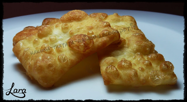 tigelle durante cene estive all'aperto. Io questa volta ho voluto alleggerirlo utilizzando l'olio al posto dello strutto ma la ricetta originale vuole lo strutto sia nell'impasto sia nella cottura, comunque sia anche questa versione è buonissima. Sciogliere il lievito in una ciotola con lo zucchero e il latte tiepido, poi aggiungere la farina, l'olio, il sale e l'acqua frizzante un poco per volta, iniziare ad impastare prima con una forchetta, poi rovesciare l'impasto sulla spianatoia infarinata e continuare a lavorare con le mani, formare una bella palla liscia e mettere a lievitare per 2 ore. trascorso il tempo, stendere porzioni d'impasto con il mattarello (o se preferite anche con la sfogliatrice) fino a raggiungere uno spessore di 3 mm, con un coltello o con la rotella dentellata tagliare dei rombi della misura che preferite (i miei questa volta erano dei rettangoli), buttarli in olio bollente, quando un lato sarà dorato, girarlo per far dorare anche l'altro, cuocere pochi pezzi per volta. Una volta cotti metterli su carta assorbente per farli asciugare un pò. Sono buonissimi anche freddi il giorno dopo, ci sono addirittura persone anziane che ci fanno colazione con il caffè-latte, non sto scherzando!!
